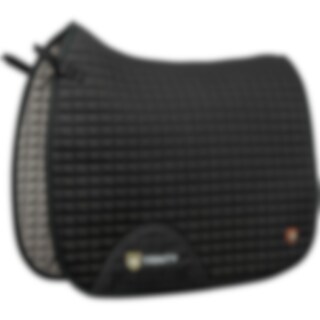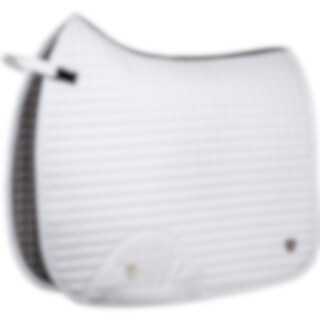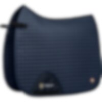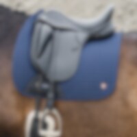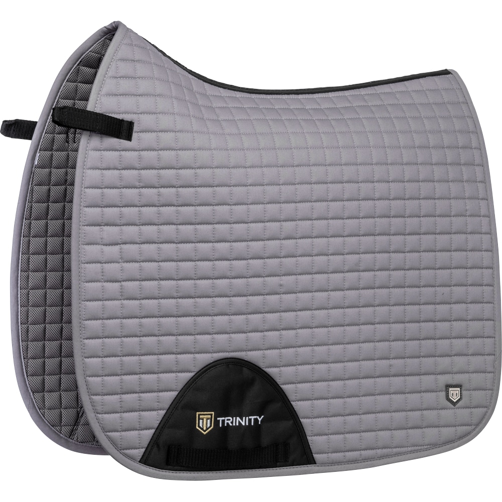 Quiltet bomuldsunderlag med inderside i kølende Coolmax funktionsmateriale, som leder fugt væk. Panel i 3D mesh langs med rygraden for at give yderligere ventilation. Kort strop med elastik til at sætte fast i sadlens D-ring, så den passer til de fleste modeller. Ekstra forstærkning ved sadelgjorden for at reducere risikoen for slitage. Trinity-broderi på gjordforstærkningen samt Trinity metallogo på venstre side.