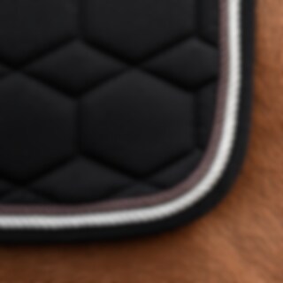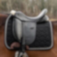 Quiltet sadelunderlag med yderside i slidstærk bomuldstwill, kraftig kombinationspolstring i 550 g polyfill + 1 cm foam giver et stabilt underlag, der holder formen og bliver på plads, inderside i 100 % polyesterfunktionsmateriale, der hjælper med at tran