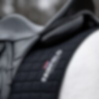 Quiltet underlag med yderside i slidstærkt twill. Kraftig 550 g polyesterfiltpolstring giver et robust underlag, der holder formen og bliver på plads. Inderside i blød polyester coolmax, der transporterer fugt væk fra hesten. Ekstra forstærkning ved sadel