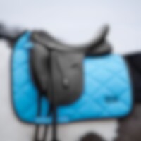 Tykt sadelunderlag med kombineret polstring i 300 g polyesterfyld + 0,80 cm skum, der får sadelunderlaget til at ligge fast under sadlen og holde formen vask efter vask. Indvendigt i Coolmax-funktionsmateriale, der hjælper hesten med at holde en behagelig temperatur. Velcrobånd til fastgørelse på sadlen. Broderet Fairfield-logo.