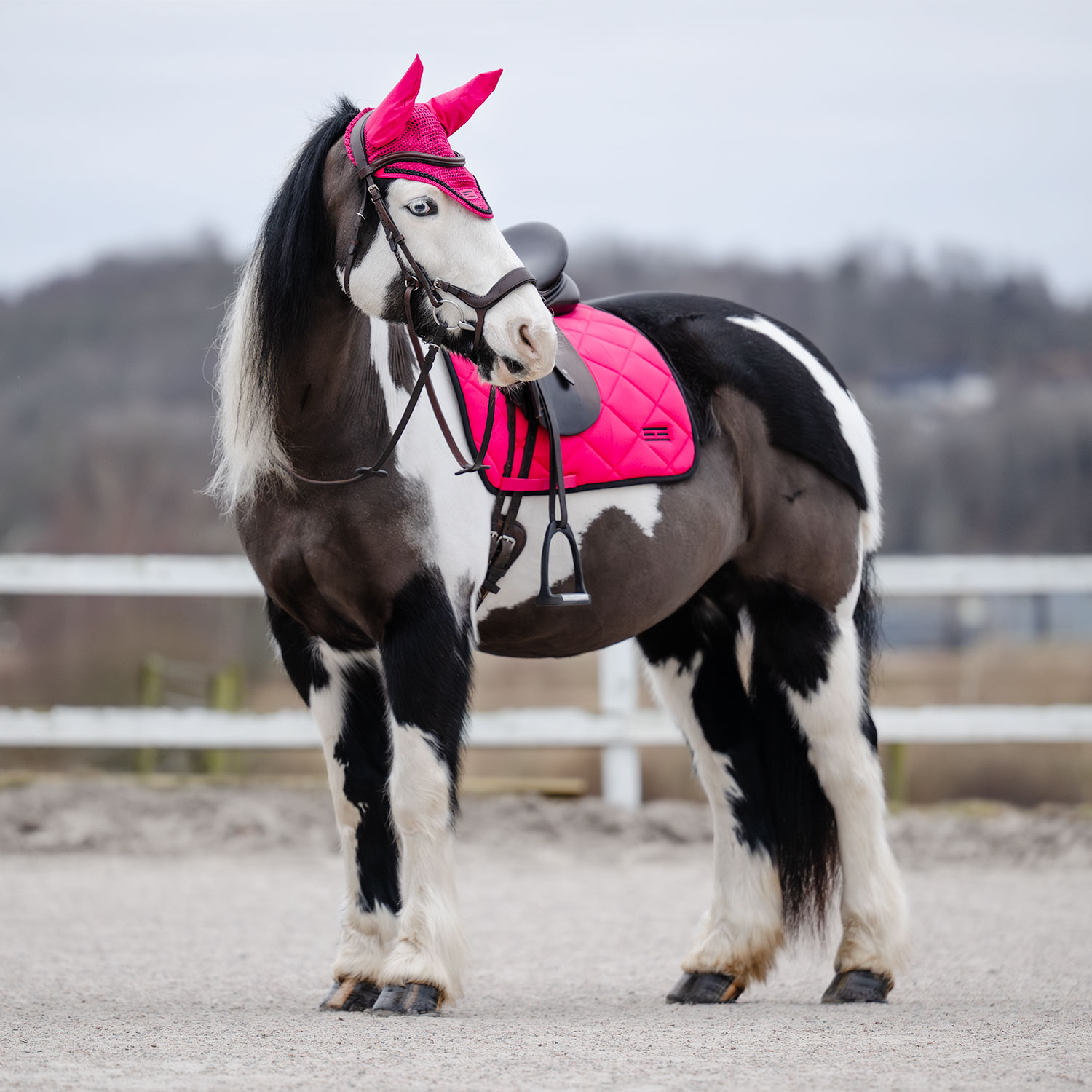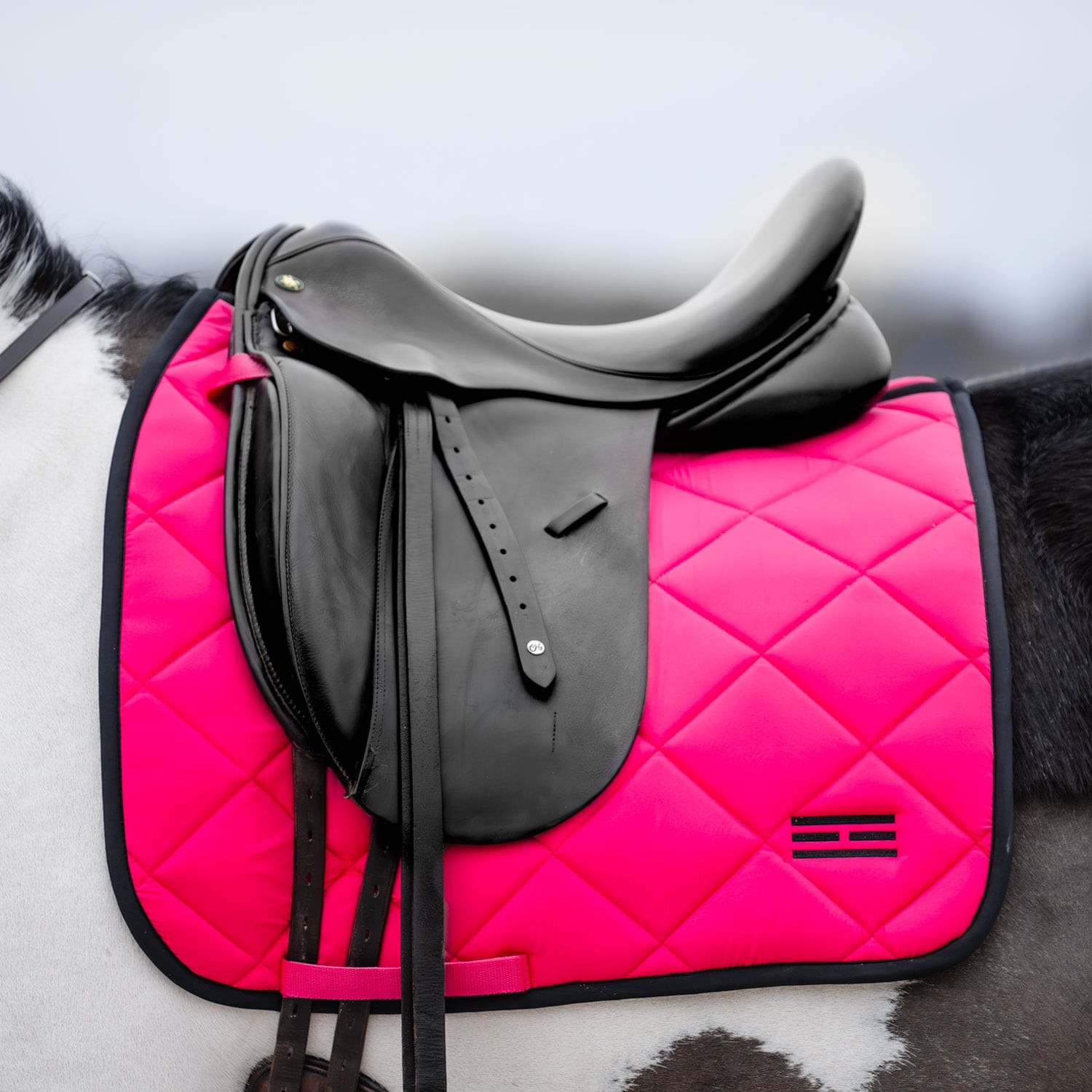 Tykt sadelunderlag med kombineret polstring i 300 g polyesterfyld + 0,80 cm skum, der får sadelunderlaget til at ligge fast under sadlen og holde formen vask efter vask. Indvendigt i Coolmax-funktionsmateriale, der hjælper hesten med at holde en behagelig temperatur. Velcrobånd til fastgørelse på sadlen. Broderet Fairfield-logo.