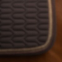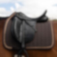 Sadelunderlag i polyester twill med et lille quiltet zigzagmønster. Robust kombiunderlag i 300g polyfill + 1,2 cm skum, der giver et robust sadelunderlag, der bliver på plads og holder formen vask efter vask. Polyester coolmax indersiden hjælper med at transportere fugt væk for at opretholde en behagelig temperatur for hesten. - Mesh-panel langs rygsøjlen for øget ventilation. Forstærket ved gjorden for ekstra holdbarhed, korte velcrostropper til fastgørelse til sadlens d-ring gør, at den passer under de fleste sadelmodeller. Dekoreret med glimmerbånd og silkepiping i lurex. Hvid sadelunderlag med hvid inderside, andre med sort indvendigt.