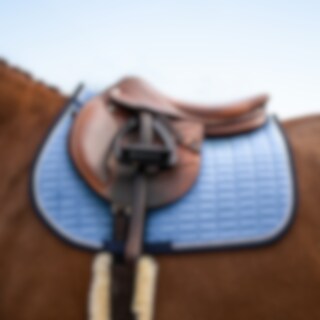Underlag med yderside i kraftig, slidstærk bomuldstwill. Kombinationspolstring af 500 g polyfyld og 1 cm mm skum hjælper underlaget med at holde faconen vask efter vask og virker støddæmpende. Indersiden i 100 % bomuld lader hestens hud ånde og forhindrer snavs og støv i at sætte sig fast.