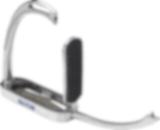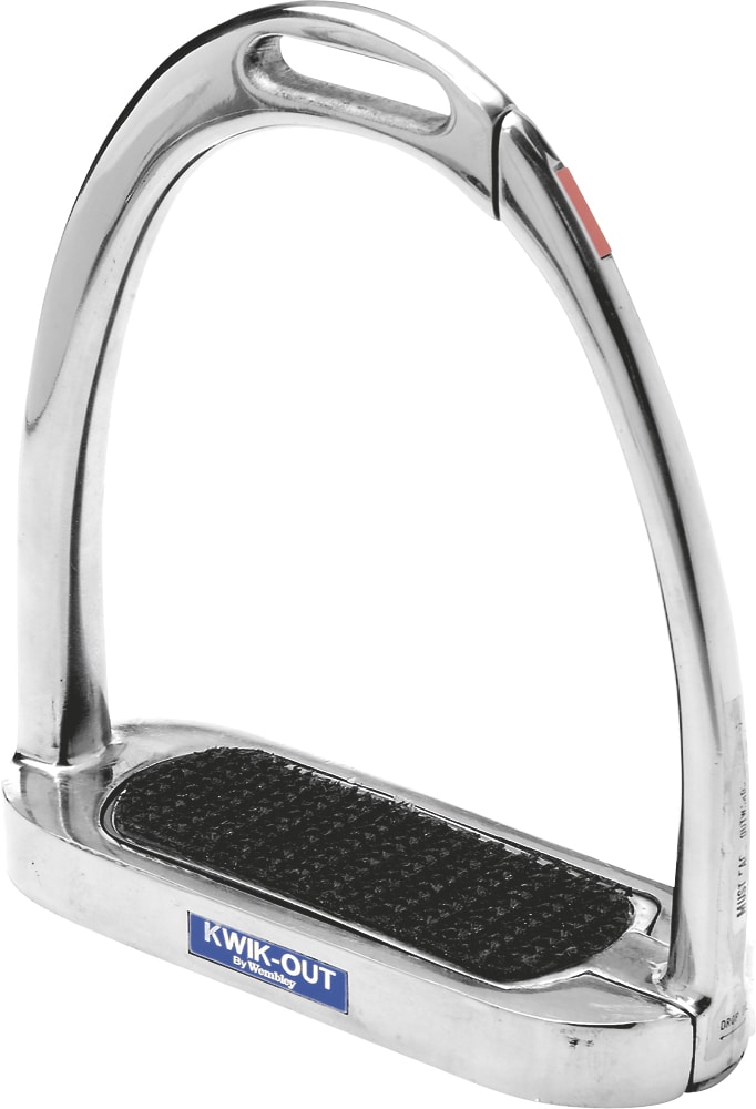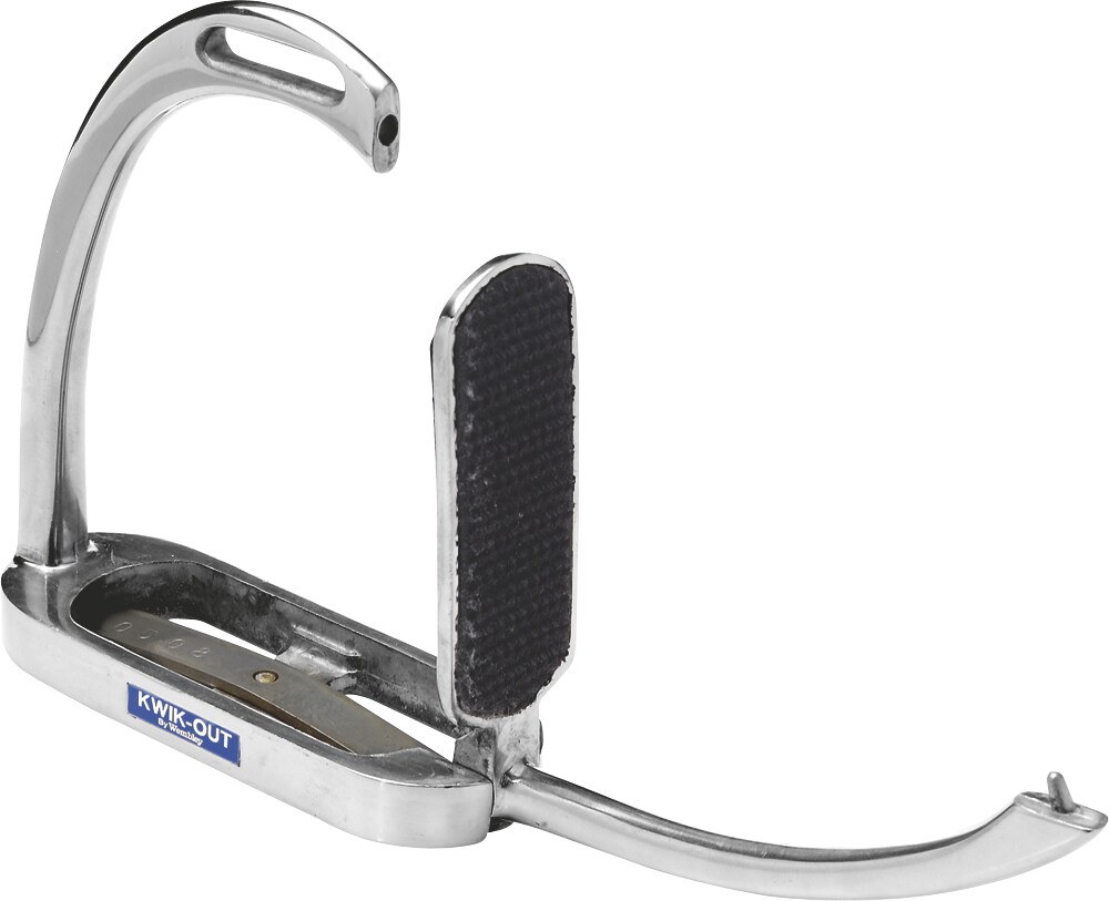 Stigbøjlen åbner sig, når foden trykker mod dens side, hvilket fjerner risikoen for at hænge fast og blive slæbt efter hesten. Rustfrit stål.