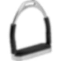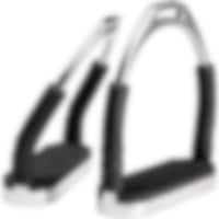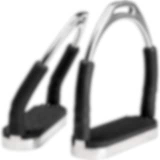 Rustfrie, fleksible stigbøjler med sort plade og beskyttelse på siderne.