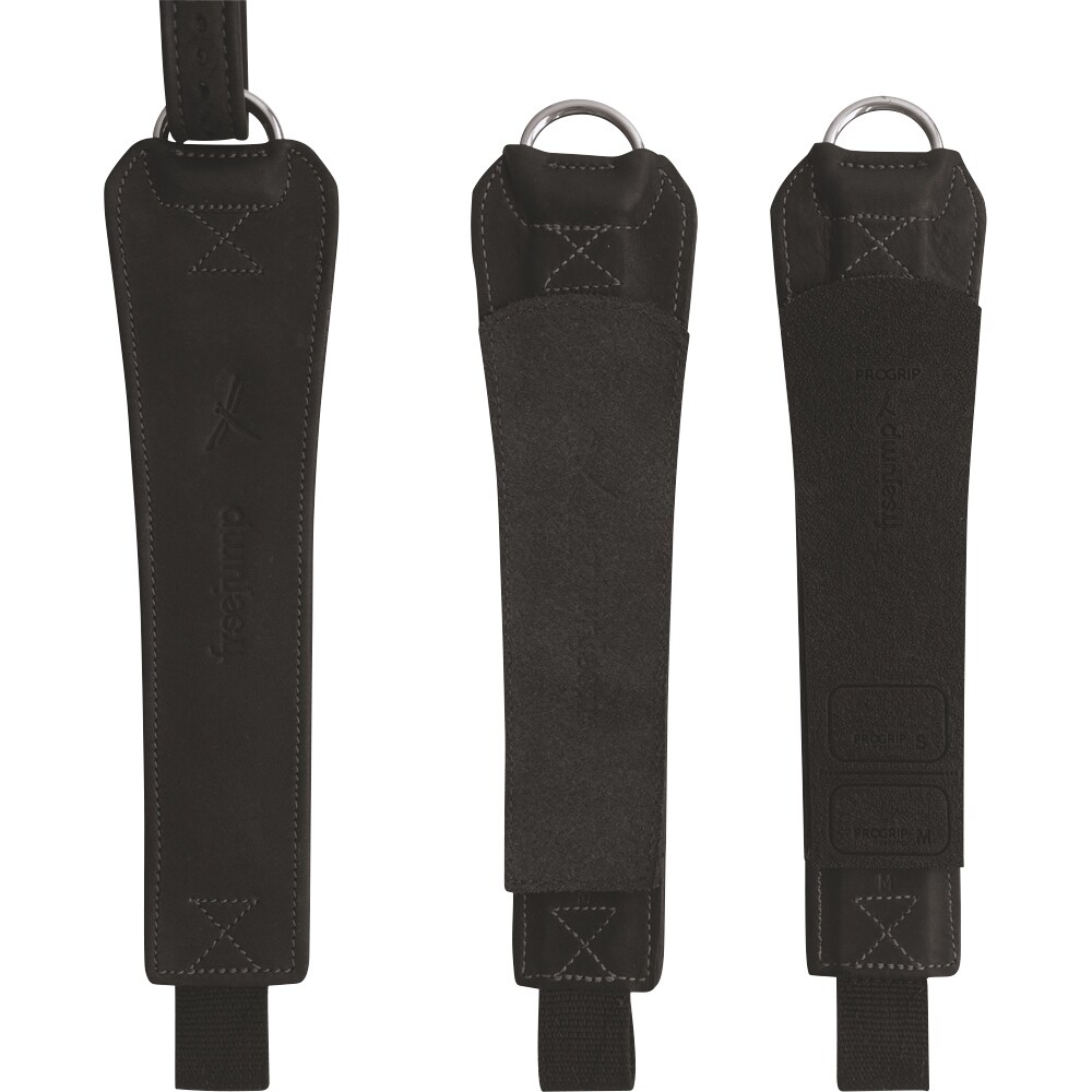 Stigremme i blødt skind forstærket med nylon. Indersiden af stigremmene kan skiftes og lukkes med velcro. Leveres med et par i læder og et par i gummi, som sikrer ekstra godt greb. Kan klippes til for at passe til stigremmenes forskellige størrelser. Flad, bred overdel sikrer bedre kontakt samtidig med, at stigbøjlen kommer til at sidde i den rigtige position uden at låse schenkelen fast. Passer kun til stigbøjler fra Freejump. S: < 150 cm, M: 150 cm - 170 cm, L: > 170 cm. Størrelserne henviser til rytterens cirkahøjde.