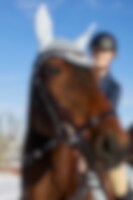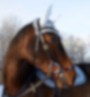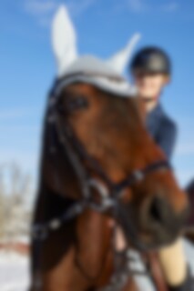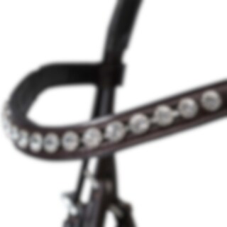 Kombineret trense i vegetabilsk garvet, europæisk læder. Justerbart næsebånd med blødt for, drejet, foret pandebånd med hvide sten, anatomisk formet nakke med blødt for.