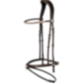 Islændertrense med buet nakkestykke. Blødt for på næsebånd og nakkestykke. Løst, underste næsebånd. Pandebånd med hvide og champagnefarvede sten.