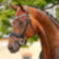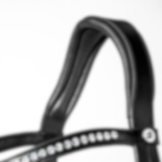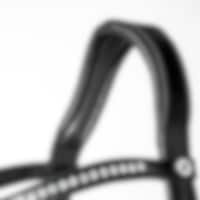 Trense med kombineret, ekstra bredt 5,5 cm, blødt næsebånd, som bliver smallere ved bidringen. Bred, drejet nakke med blødt for. Drejet pandebånd dekoreret med hvide sten.