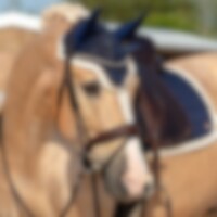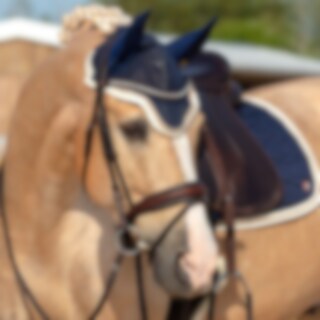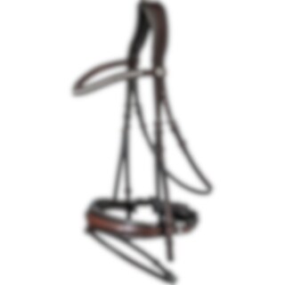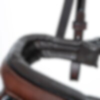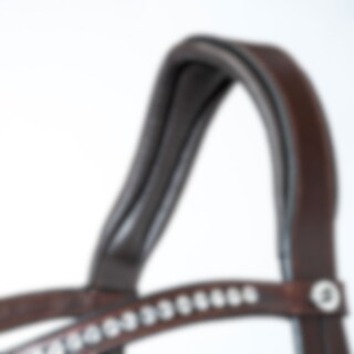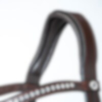 Trense med kombineret, ekstra bredt 5,5 cm, blødt næsebånd, som bliver smallere ved bidringen. Bred, drejet nakke med blødt for. Drejet pandebånd dekoreret med hvide sten.