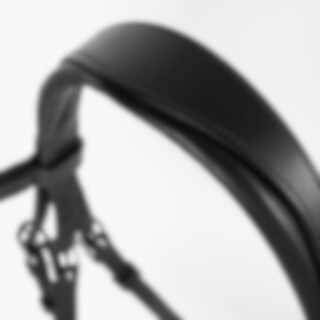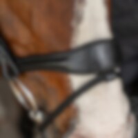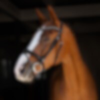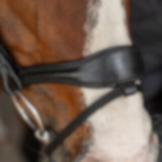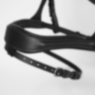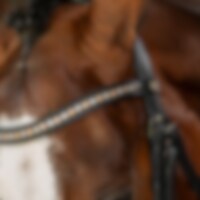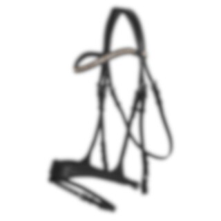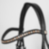 Trense med formet foret næsebånd med en ekstra bred midterdel. Bred formet nakke, drejet, foret pandebånd dekoreret med hvide sten.