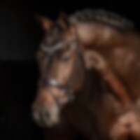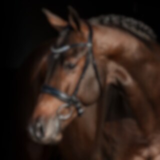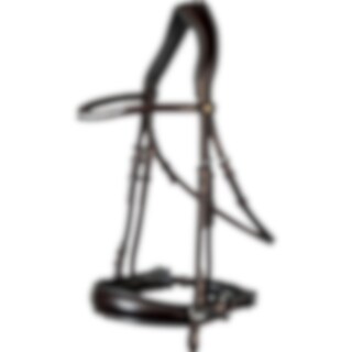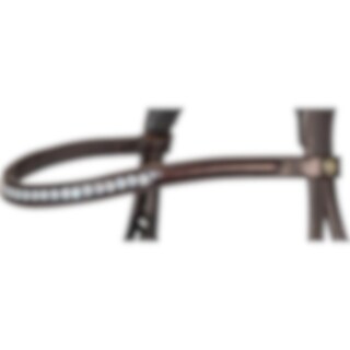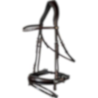 Trense med kombineret næsebånd. Europæisk læder med 4,5 cm bredt, foret næsebånd. Fuldstændig aftagelig, underste næsebånd. Bredt, formet nakkestykke med blødt for og drejet pandebånd med hvide sten.