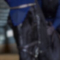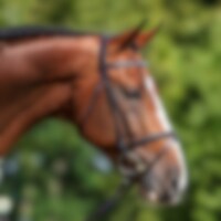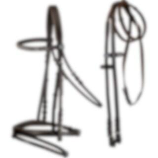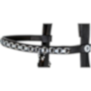 Trense med kombineret næsebånd. Blødt foret næsebånd og nakkestykke. Pandebånd med sølvfarvet kæde.