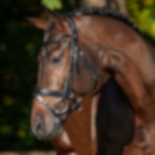 Rundsyet trense med kombineret næsebånd og tøjlekroge. Drejet næsebånd sikrer bedre pasform. Lukkes med tilbagetræk. Bredt, blødt nakkestykke. Drejet pandebånd. Blød polstring på pandebånd, nakke- og næsebånd.