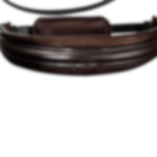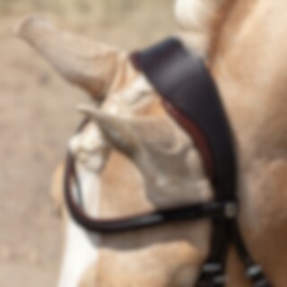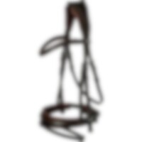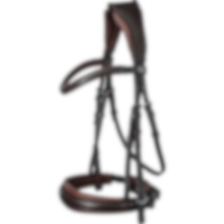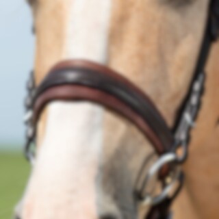 Trense med kombineret næsebånd. 6 cm bredt, foret nakkestykket udformet, så der er en kanal på midten. Næsebåndet er 5 cm bredt med blødt for. Drejet, foret pandebånd. Fuldstændig aftageligt, underste næsebånd.