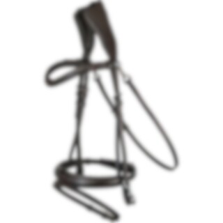 Trense med kombineret næsebånd i blød læder. Drejet, foret pandebånd med velcrolukning, næsebånd med blødt for og aftageligt, kombineret næsebånd. Justerbar kæberem, som kan tages helt af og med sidestykker med karabinhager. Nakkestykket er bredt og dreje