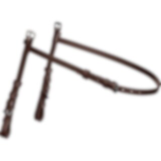 Sidestykker med tilpasset længde, så de passer til hackamore. Ekstra rem, som lukkes ved ganacherne for at holde trensen på plads.