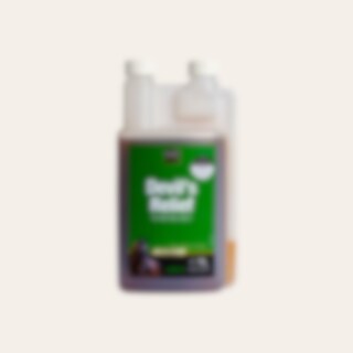 Devil's Relief er et flydende tilskud med djævleklo, kraftfulde urter og MSM til lindring af stive led og områder, der er påvirket af mindre stød, slag eller spændinger. BEMÆRK! Må ikke anvendes til drægtige eller diegivende hopper. Hvornår anbefales DEVIL'S RELIEF? Ved forvridninger, forstrækninger og hævelser. Ved ledstivhed. Til heste under genoptræning og inden ridning. Til den ældre hest. 1 L. KARENSTID: SWE: 96 timer FEI: 48 timer