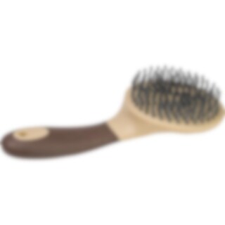 Man- og halebørste i PP-plast med gummibelagt gribevenligt håndtag i TPE. Pigge med knopper, der er skånsomme mod man og hale. Husk at rengøre dine børster regelmæssigt med mild hesteshampoo blandet med vand for at holde dem hygiejniske og pæne.