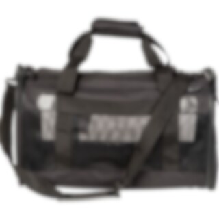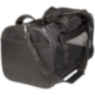 Hundebur i solid, polstret nylonkonstruktion med stabil bund. Netpaneler sikrer god ventilation og med to indgange. En på siden og en i toppen. Tasken kan spændes fast i bilens sikkerhedsbælte. To aflåselige lommer. Indvendig ring til line. Håndtag og skulderrem. 48 x 28 x 26.