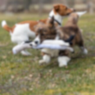 Meget hundelegetøj er ikke decideret ”tyggesikret”, men er til at lege med. En hvalp bør ikke efterlades alene med sit legetøj. Hvis du ikke ved, hvordan din hund reagerer på legetøj med lyd (pibedyr), bør du undgå det. Nogle hunde ”slår byttet ihjel” og river det i småstykker eller æder det rub og stub. Har du brug for ekstra holdbart legetøj eller produkter, der er beregnet til at tygge på, spørger du os bare om råd.