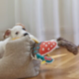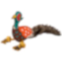 Fasan i solid og slidstræk kanvas. Rebben i bomuld/polyester og bagdel i polyesterpels. De forskellige materialer motiverer til leg og apport.