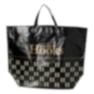 Indkøbspose af genanvendt plast. Mål: 50 x 21 x 41 cm.