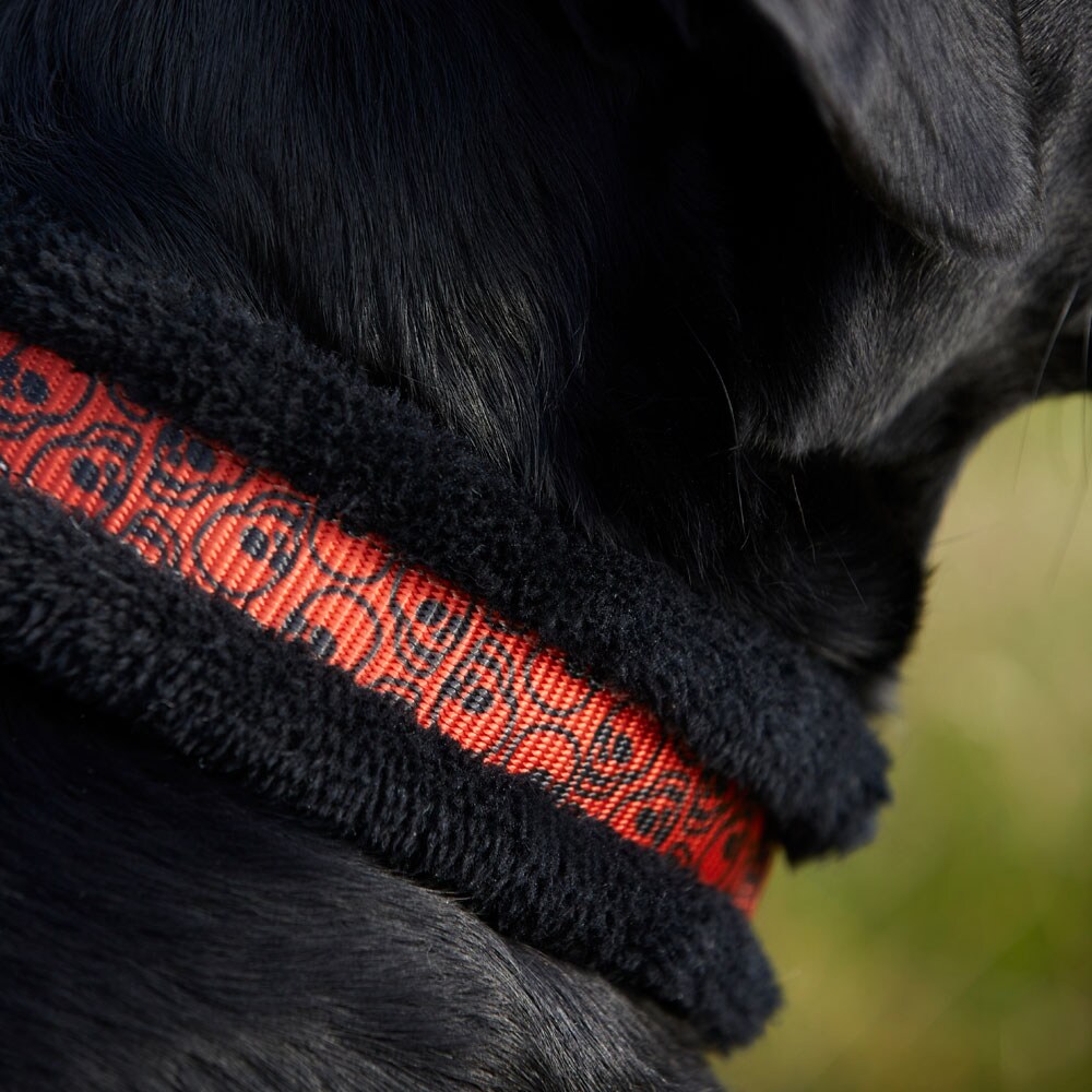 Halsbånd i polyester. Rib foret med blød teddy-fleece for at modvirke slidmærker. Spænder og beslag i rustfrit stål giver høj holdbarhed og trækstyrke.