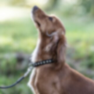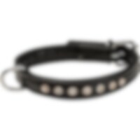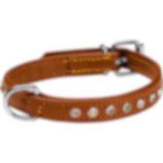 Halsbånd i ekstra blødt skind. Dekoreret med hvide sten. Bredde: 15 mm.