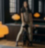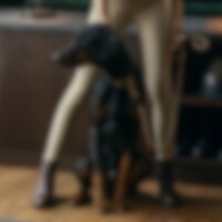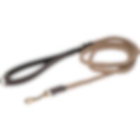 Hundeline i rundflettet polyester med håndtag og detaljer i krokoprintet læder. Længde: 180 cm. Ø 4 mm. Mål Karabinhage 7cm. Matcher halsbånd 043139 perfekt.