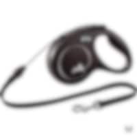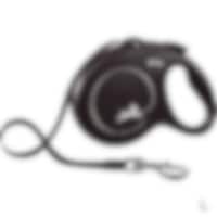 Rulleline med FLEXI's patenterede bremsesystem. S: 5 m line til hunde <12 kg. M: 5 m line til hunde <20 kg. L: 5 meter snor til hunde <50 kg. XL: 8 m snor til hunde <50 kg.
