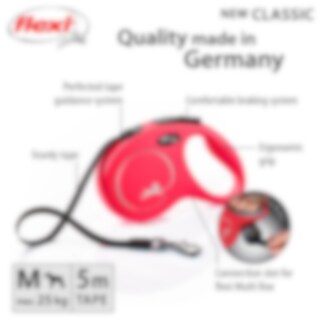 Rulleline med FLEXI's patenterede bremsesystem. 5 m lang snor til hunde op til 25 kg. Ergonomisk design med komfortabelt bremsesystem.