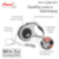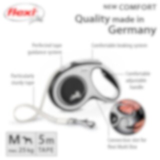 Rulleline med FLEXI's patenterede bremsesystem. 5 m lang line til hunde op til 25 kg. Med justerbart system i håndtaget.