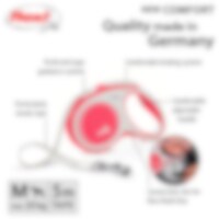 Rulleline med FLEXI's patenterede bremsesystem. 5 m lang line til hunde op til 25 kg. Med justerbart system i håndtaget.