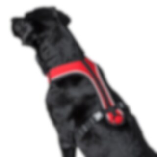 Ergonomisk sele med god pasform, som aflaster nakken for tryk. Justerbar rundt om maven. Blød polstring og reflekspipe.