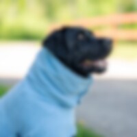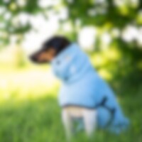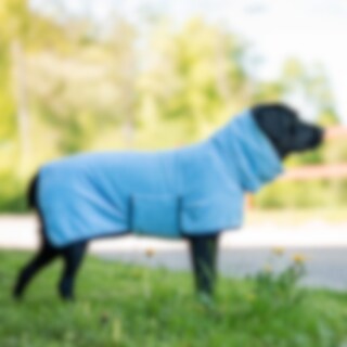 Tørretæppe til hunde i højabsorberende polyestermikrofiber. Høj krave med maveplade, god dybde i siderne og elastikrem i ryggen, så din hund hurtigt kan tørre. Fungerer lige så godt derhjemme som på sejlturen eller efter badning, og du vil ikke have en ge