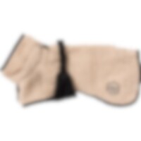 Varmt dækken i blød uldmix (50% uld, 50% polyester) med lang luv og høj krave, som kan åbnes med velcro og rulles ned efter behov. En snøre i halsudskæringen er med til at give gode tilpasningsmuligheder. Den justerbare mavegjord og de elastiske justerbare benstropper holder dækkenet behageligt på plads. Snøren bagpå over halen giver dig mulighed for at tilpasse dækkenet perfekt til din hunds mål. Mavepladen er fremstillet i softshell-materiale og foret på indersiden med fleece for at holde maven tør og varm. Åbning på ryggen til både halsbånd og sele. Ulden holder din hund varm og hjælper med at tørre den, hvis den bliver fugtig. Ulden holder på varmen, selvom den bliver våd. Dækkenet er dybt skåret over hundens bagparti for at varme og beskytte vigtige muskelgrupper. Stoffet overlapper over brystet, så hunden har fuld bevægelsesfrihed under leg og træning.