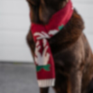 Blødt og behageligt halstørklæde til din hund med julemotiv. Det er nemt at trække halstørklædet igennem, så det bliver siddende på plads via en åbning. 100% akryl.