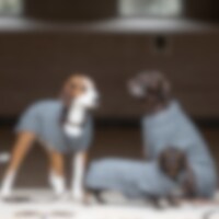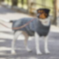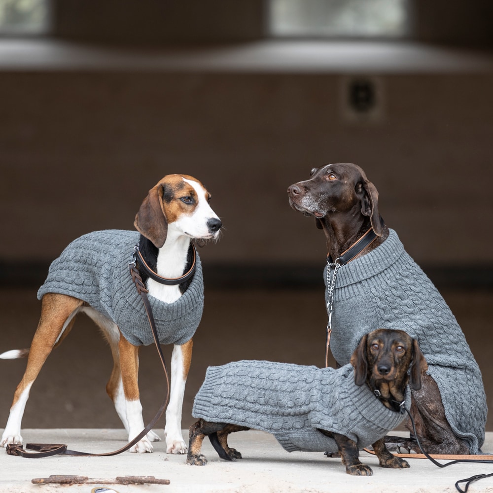 Grovstrikket hundesweater. Rullekrave og med kabelstrikning på ryggen. 100 % akryl.