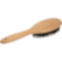 Strigle med ryg og håndtag i miljøvenlig bambu. Strigle i ægte svinebørster gør pelsen blød og blank uden statisk elektricitet. Passer til både lang og kort pels. Størrelse: 22 x 6 cm.