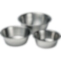 Foderskål i holdbart, slidstærkt, rustfrit stål. Let at holde rent og hygiejnisk. Tåler opvaskemaskine. Passer til både vand og foder. Køb flere, så kan du nemt sætte en ny frem, når den anden er i opvaskemaskinen. Str.: S = 1,5L, M = 2L og L = 3,6L