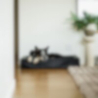 Hundeseng i slidstærkt stof lavet af polyurethan. Sengen er blød og behagelig for hunden at ligge i med den hævede kant. Let at holde ren og tørre af med en klud. S: 50x60, M: 70x85, L: 80x100
