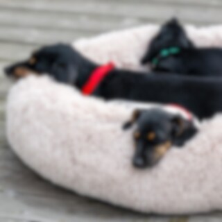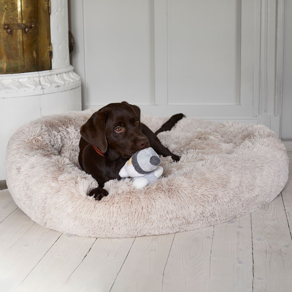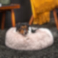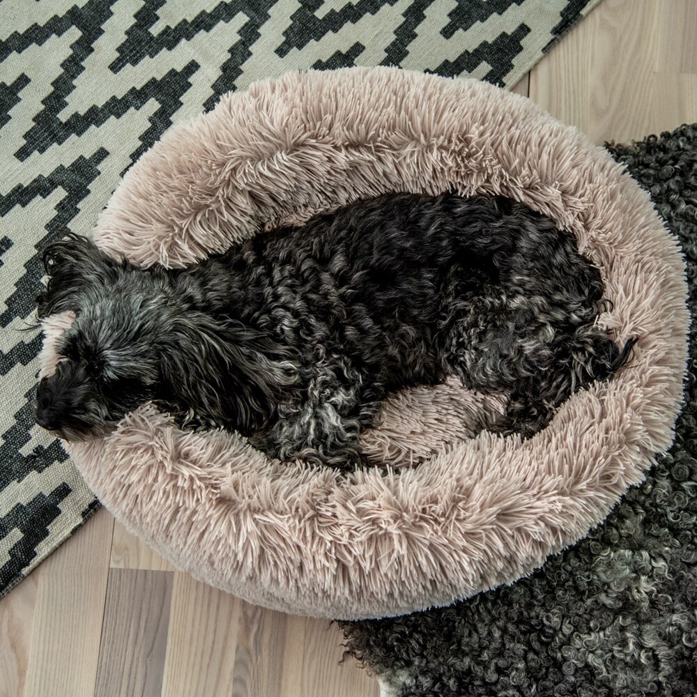 Skøn hundeseng i blød og fluffy pilé. Tykt stoppet og med brede kanter. Aftageligt betræk. S: 58 x 58 cm. M: 76 x 76 cm. L: 99 x 99 cm.