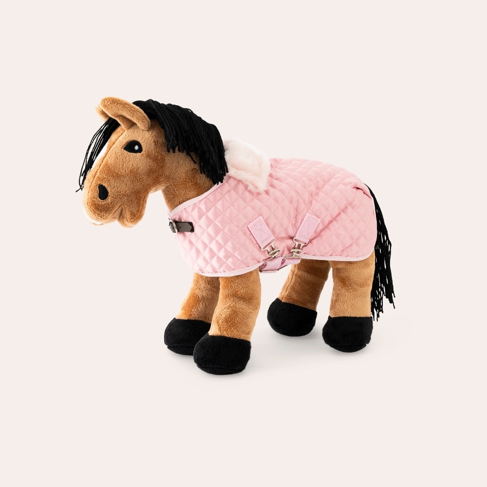 Quiltet stalddækken i skinnende polyester med glans. Letvægts 50 g polstring og inderside i varmende fleece, kantet med imiteret pels i nakken for at forhindre gnidninger. Holder din hest varm på kølige nætter eller under transport. Velegnet til Hööks bløde heste Clyde, Joker og Lancelot. CE-mærket og testet i henhold til EN71-2-3. Er uegnet til børn under 3 år. Risiko for kvælning pga. smådele og pga. lange snører/remme. Fjern alle sedler og plastdetaljer inden brug.