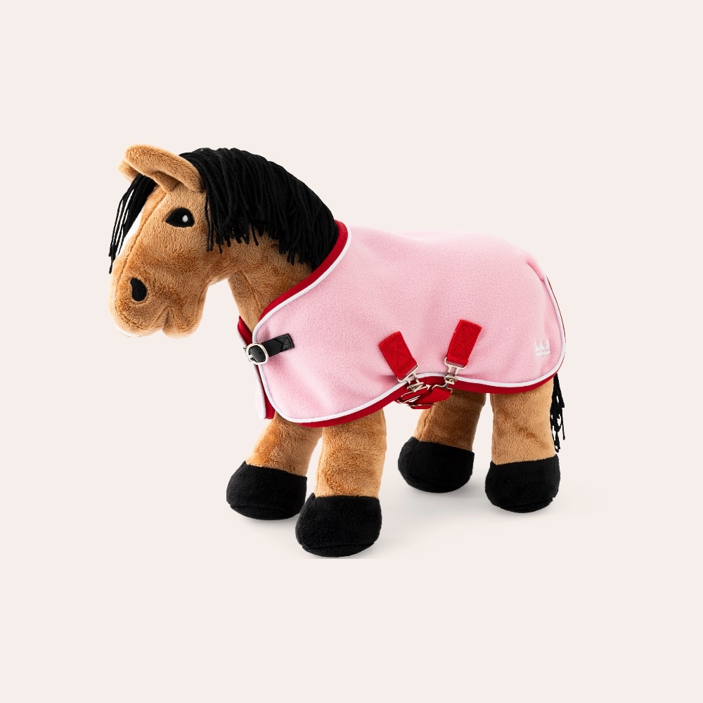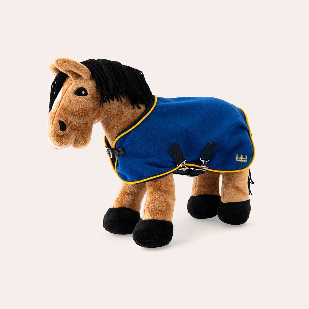 Luksuriøst fleecedækken med spænder i kunstlæder foran og krydsgjorde med T-spænde. Kontrastfarvet kantbånd i blødt bomuldstwill, piping og broderi. Passer til Hööks krammedyr Clyde, Joker og Lancelot. CE-mærket og testet i henhold til EN71-2-3. Ikke egn