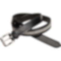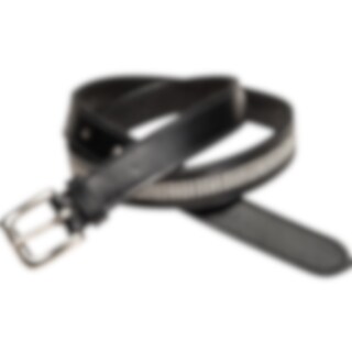Læderbælte med klare rhinsten. Sølvfarvet spænde. Bredde: 25 mm.