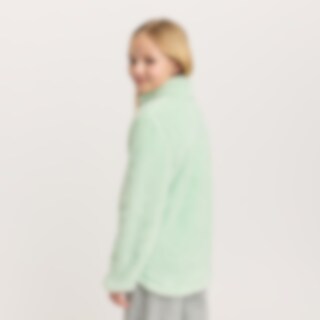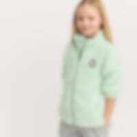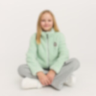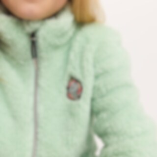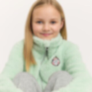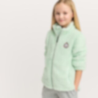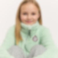 Sweater i blød fleece med høj krave, lynlås foran og to åbne lommer. Hagebeskytter, som sikrer, at trøjen sidder behageligt og ikke gnaver. Sweateren har glittertråde og en broderet enhjørning foran.