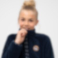 Trøje i blød fleece med høj krave og lynlås foran. Mullemotiv på brystet. To lynlåslommer foran.