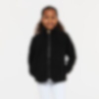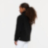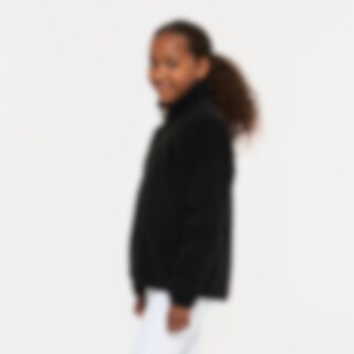 Blød fleecetrøje i blød luv med høj krave, lynlås foran og to åbne lommer.