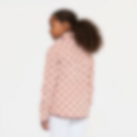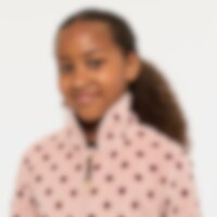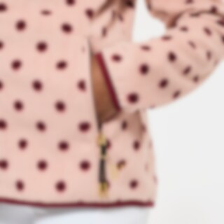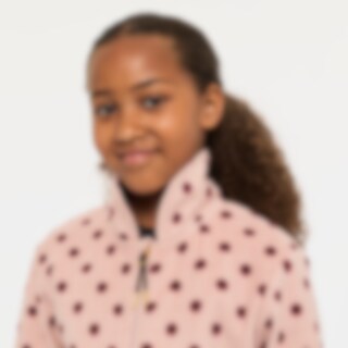 Blød fleecetrøje med høj krave, lynlås foran og to lynlåslommer.